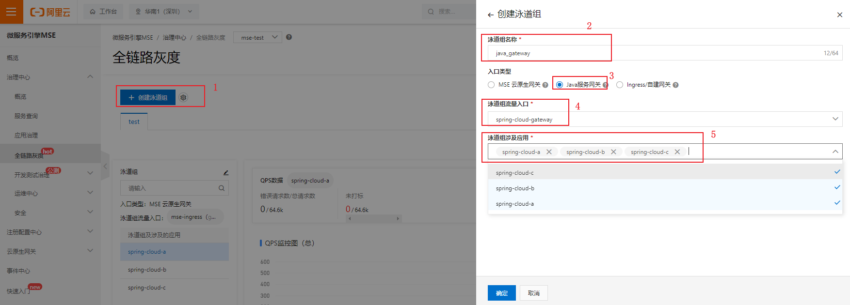 登录MSE管理控制台,在服务列表页面创建服务,配置如下。